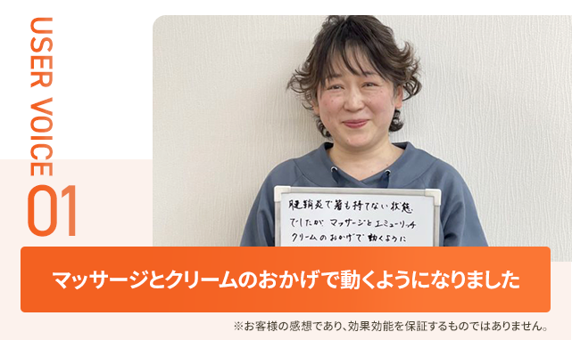 施術後は、セルフケアもアドバイスさせていただき、再発を防ぎながら改善へと導きます。